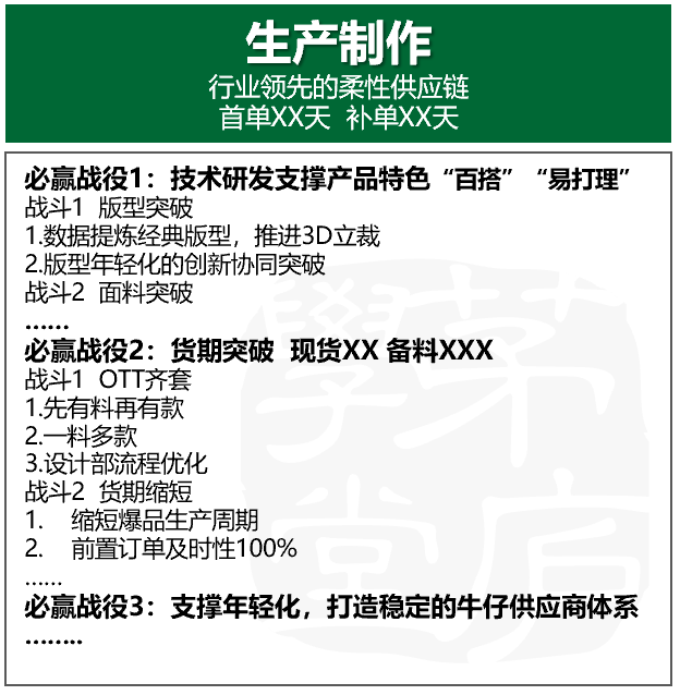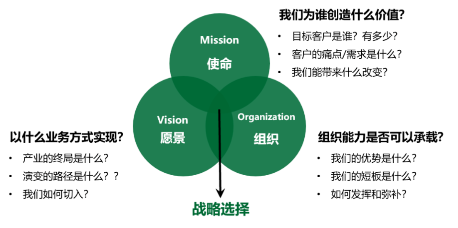 至此,业务战略清晰了,就可以来盘一盘企业的业务链路是否顺畅,现有的组织架构是否能够支撑战略落地,是否需要调优,其中的决策机制、激励机制、协同机制是否需要优化,再来盘一盘每个部门的职责定位是否清晰,关键岗位所需的胜任力,再对照现有组织的人才盘点,看看人岗是否匹配,最终可以梳理出能够支撑企业业务战略落地的组织和人才战略。 企业从使命愿景出发,借助战略飞轮和战略屋,可以更清晰的看清楚自己的战略定位和战略实施路径,可以借此共创的过程,让团队达成共识,更清晰落地路径,可以真正凝聚一群志同道合的人一起朝着同一个目标前进。