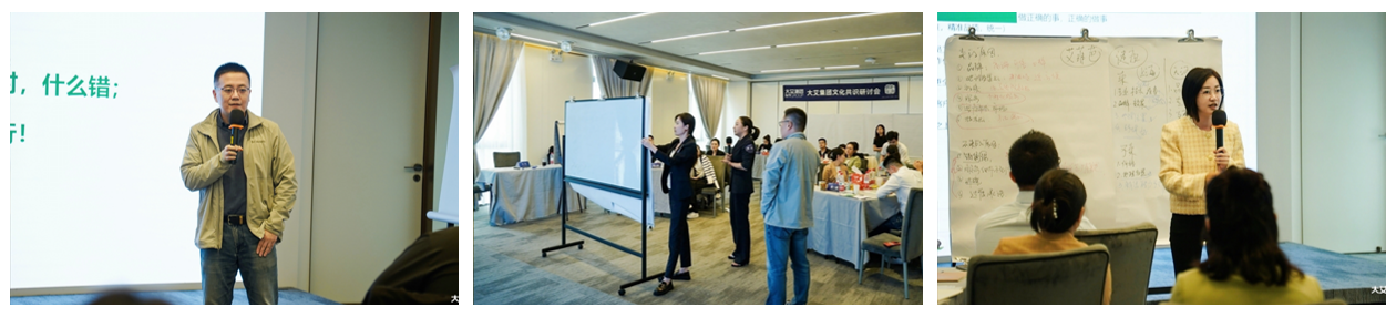 同时在“对待团队”这个维度的价值观共创上,前中后台的高管坦诚的面对过往在沟通和协同上的问题,共同寻找解决方案,以团队合作精神,展示大艾文化之魂。
