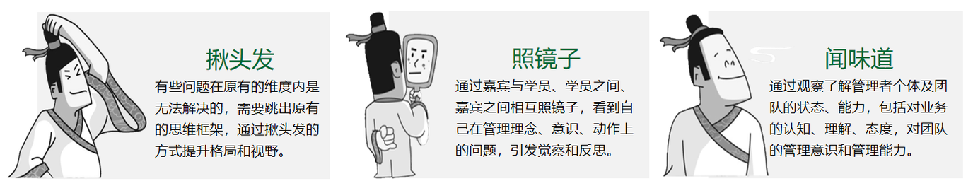 茅庐学堂将经过千锤百炼的“三板斧”训战体系,作为实现系统性领导力提升的核心引擎。这是一个提升领导力、凝聚团队、践行文化,集“业务、组织、文化”三线共修的高强度项目。