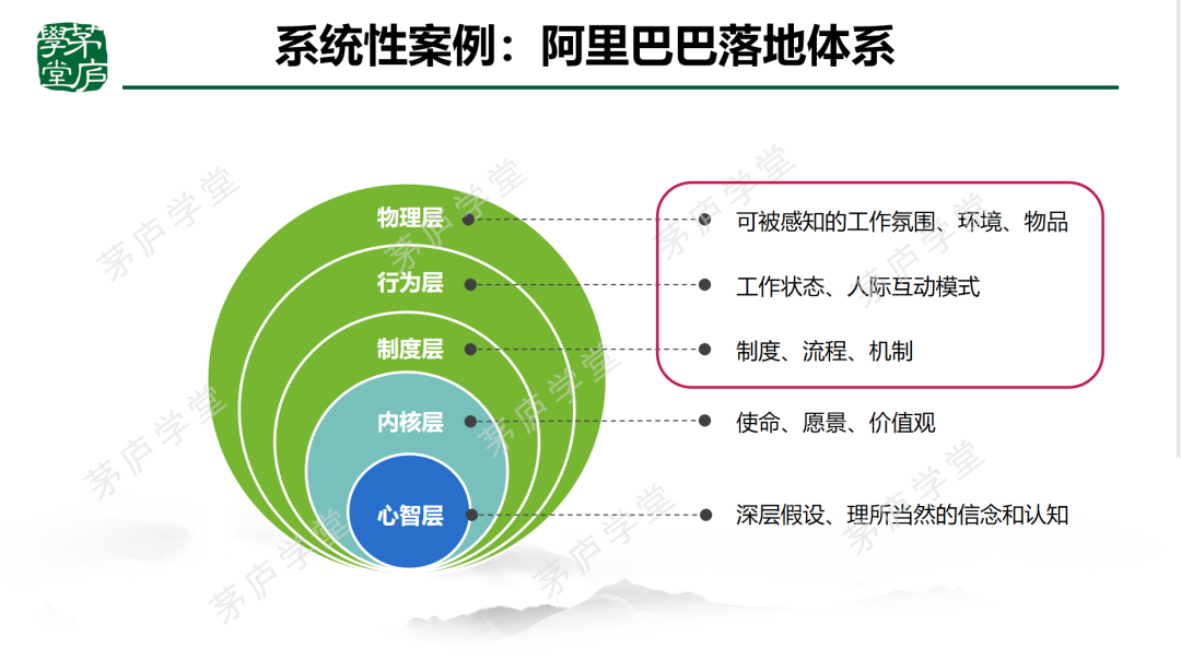 制度层指的是制度、流程、机制等内容,它就像一个人的脊梁骨,让文化能够立得起来,它也像一个人的牙齿,让文化在组织里有真正的力量。