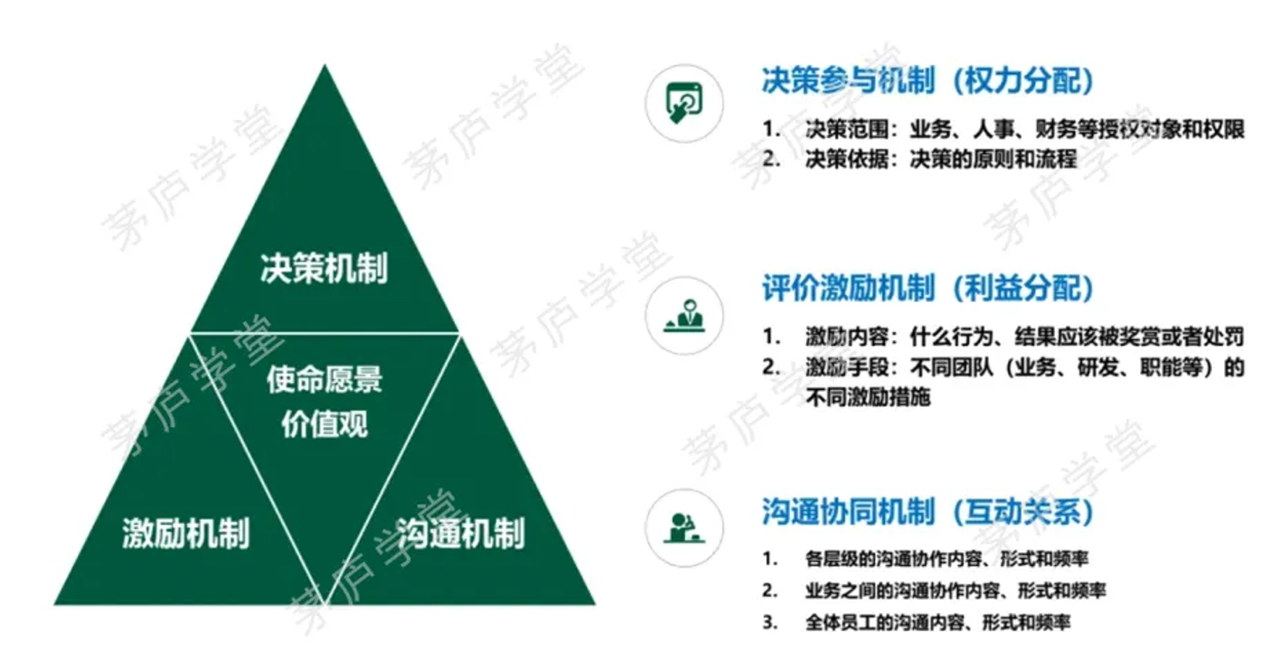 茅庐学堂帮助企业从决策参与机制、评价激励机制、沟通协同机制三大维度,对现有管理机制进行系统诊断。例如,决策参与机制是否清晰高效?评价激励机制是否与战略目标强关联?沟通协同机制是否能够打破部门墙、实现横向拉通?通过对这些机制的梳理优化,让组织能力在日常运营中真正“转起来”。